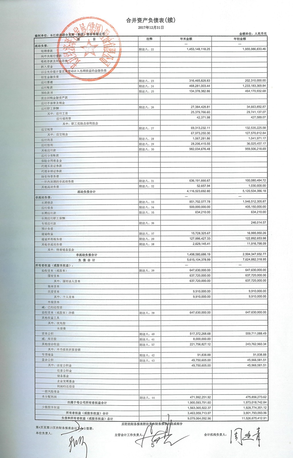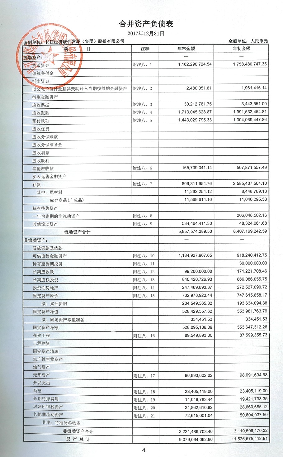 2017年度合并資產(chǎn)負(fù)債表