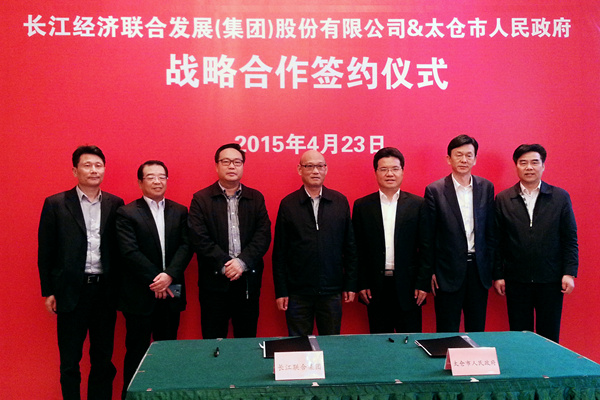 2015年4月23日,長江聯(lián)合集團(tuán)和太倉市人民政府簽署戰(zhàn)略合作協(xié)議,雙方將通過深層次、全方位合作,互補(bǔ)優(yōu)勢,實(shí)現(xiàn)互動(dòng)共贏。集團(tuán)董事長王亞奇,總裁閔師林,副總裁居亮、湯建華和太倉市市委書記王劍鋒,市委副書記、市長沈覓,副市長趙建初等出席簽約活動(dòng)。