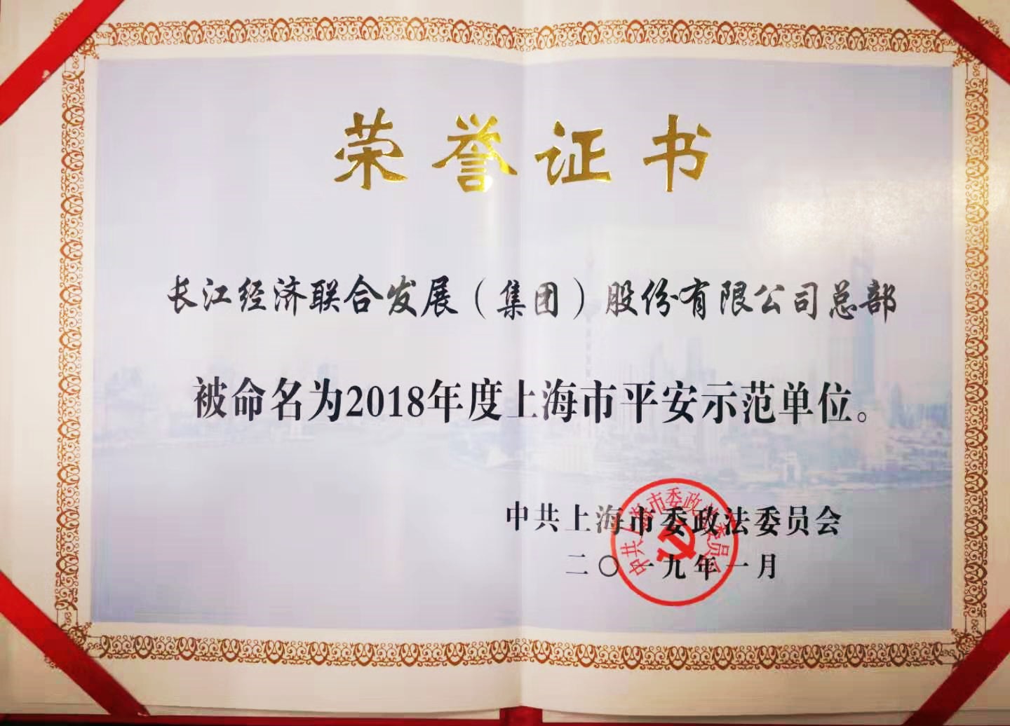 集團(tuán)總部榮獲“2018年度上海市平安示范單位”稱(chēng)號(hào)